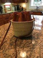 My 10" tote with leather handle, leather purse insert, and my monogram scrimshaw